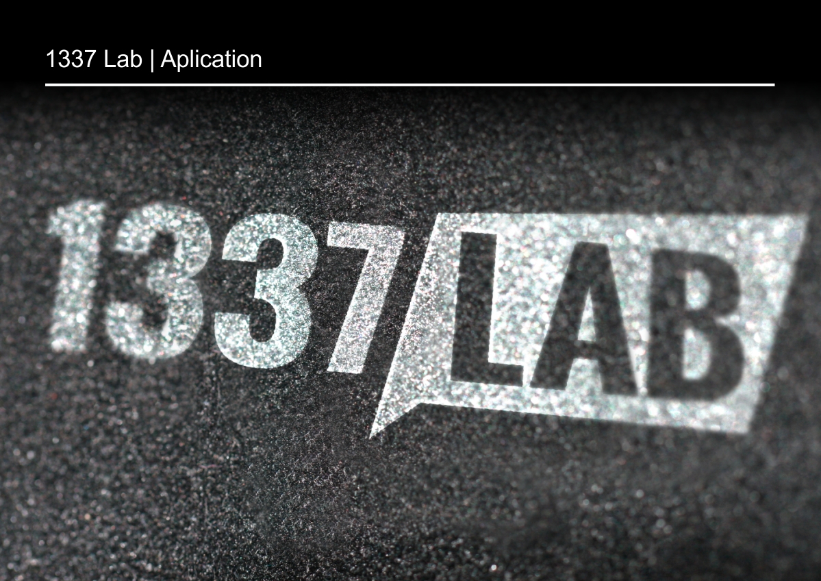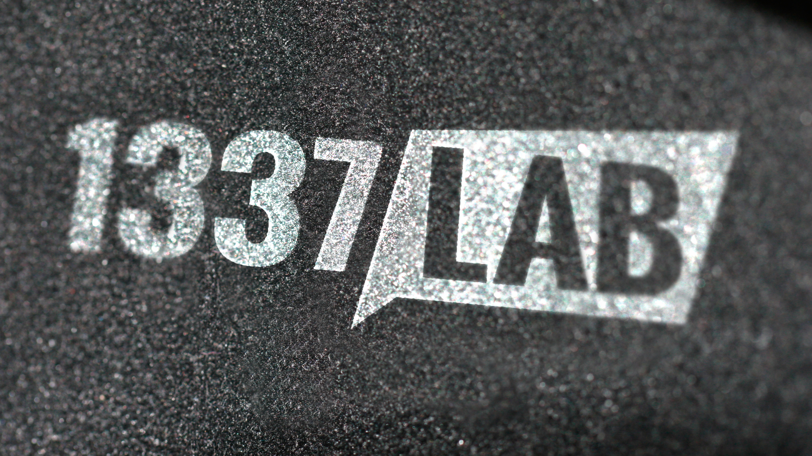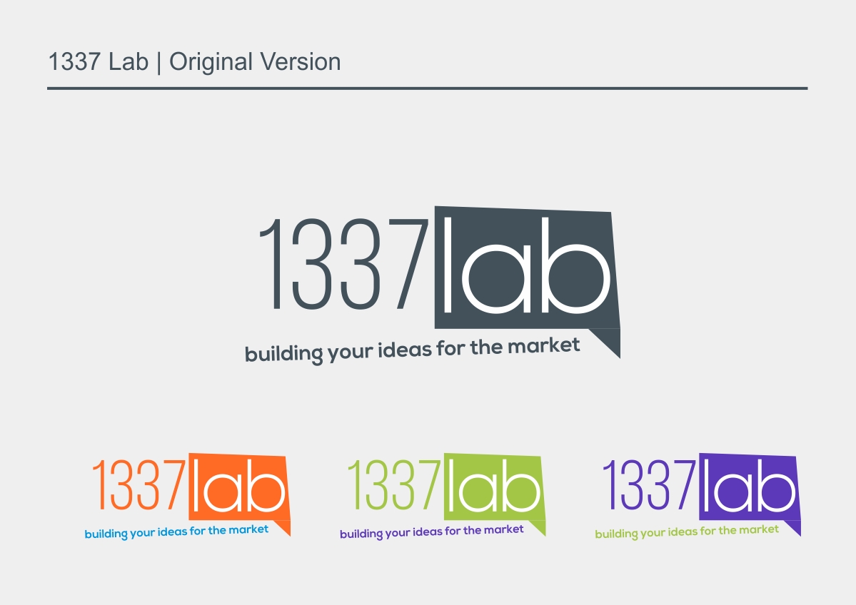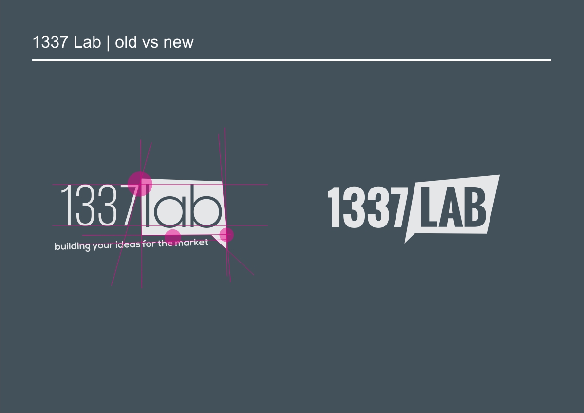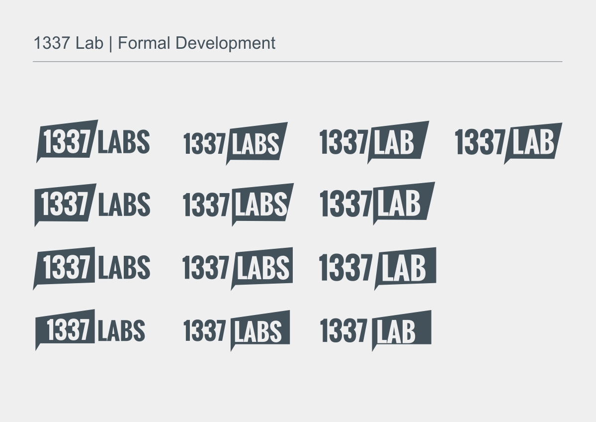 We ended up giving the blurb the golden ratio proportions. We aligned the texts so it can be read as a single line and we make parallel lines in the horizontal direction to ease the eye passage through the two words (1337 and lab)